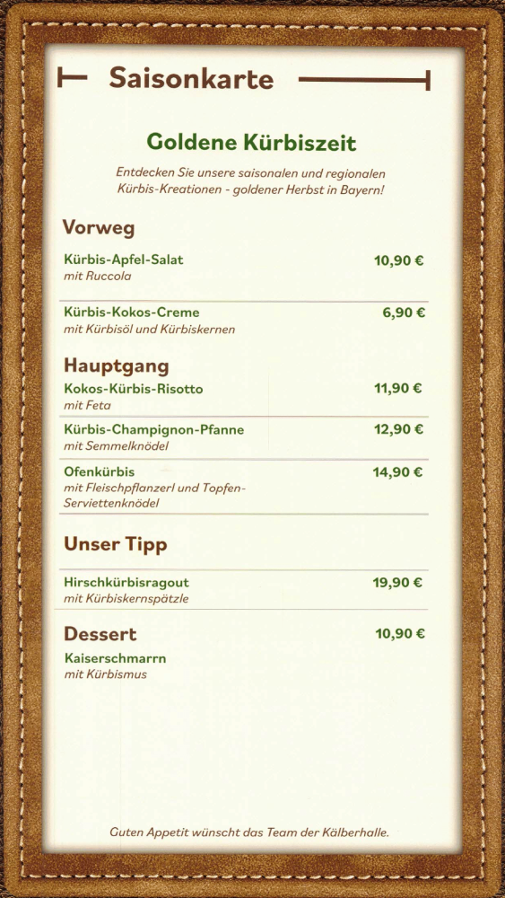 Wie immer gilt: Regional, saisonal und mit Liebe zubereitet – das ist Kälberhalle pur.